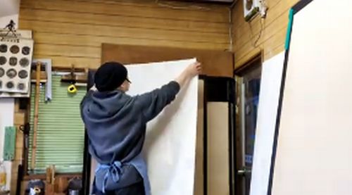 クロス(壁紙)の職人さんも同じように、のりを塗ったあとしっかり時間を置きます。ただし襖の場合は、クロスよりも紙が薄かったり、素材が繊細だったりするので、時間の取り方にもコツがあるのが特徴です。